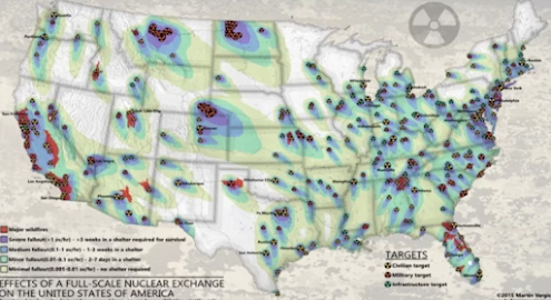 2. Fallout patterns: The map shows how radiation will spread across the country, taking into account wind direction and other meteorological factors.